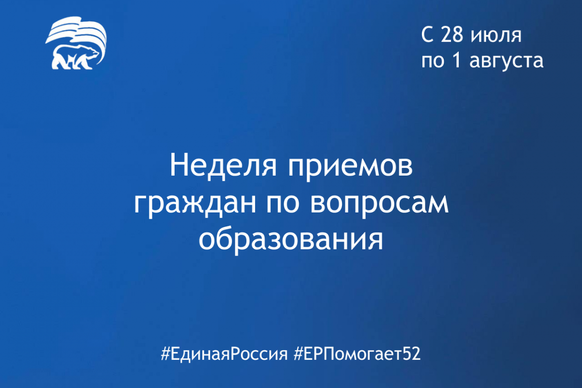 C 28 июля по 1 августа на площадке Штаба общественной поддержки, Региональной и местных общественных приемных Партии «Единая Россия» состоится тематическая Неделя приемов граждан по вопросам образования.