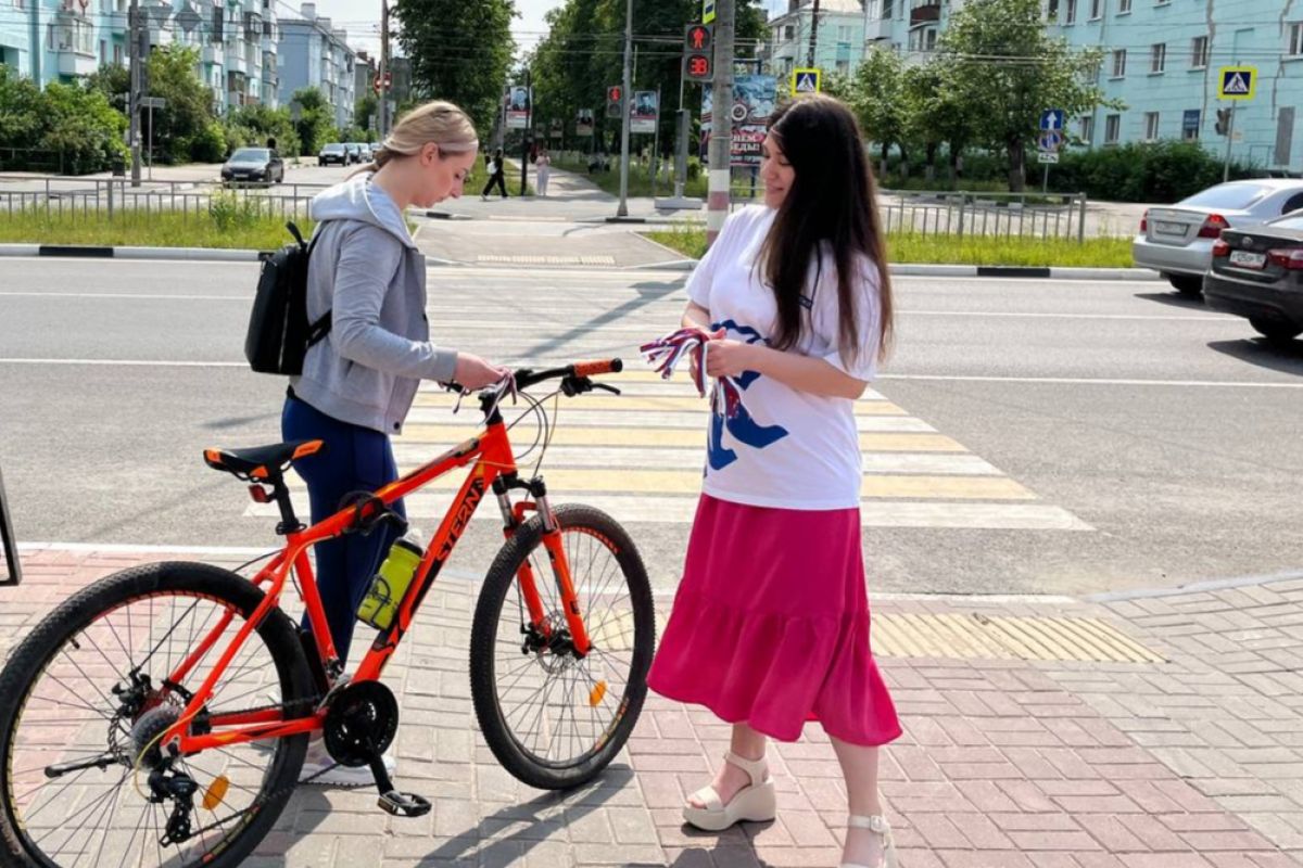 Сотни ленточек в цветах российского флага активисты партии и движения «Молодая Гвардия» раздали жителям Дзержинска в День России.